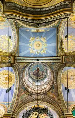 According to the project, the cathedral is a three-naved cross-domed basilica featuring two aisles and sized of 35 by 35 m, with the main altar being dedicated to the Dormition of the Theotokos, the north one to Saint Alexander Nevsky and the south one to Saint Nicholas the Miracle Worker.