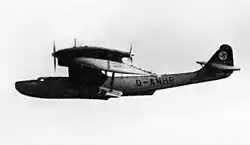 A further civil Do 18 was the Do 18F, a modified aircraft with longer wingspan and higher weights built for extended-range flights. The sole Do 18F, D-ANHR, first flew on 11 June 1937.[6] It was later modified with 656 kW (880 hp) BMW 132N radial engines to test a possible upgrade for the Luftwaffe's aircraft, flying in this form on 21 November 1939 as the Do 18L. It suffered cooling problems, however, and further development of the radial powered Do 18 was abandoned.[7]