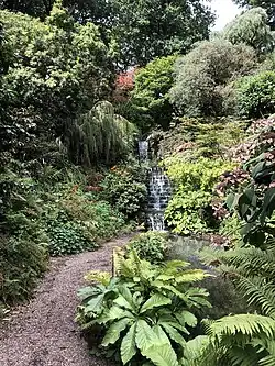 The garden occupies 12 acres, and is separated into two equal-sized sections, with the tearoom, pavilion, and quarry garden entrance dividing separating the two sections.[4][6] The layout of the garden was designed by Colonel Clive to be a gentle walk throughout, due to his wife, Dorothy, ailing, as he intended for it to be a therapeutic garden for her.[5]