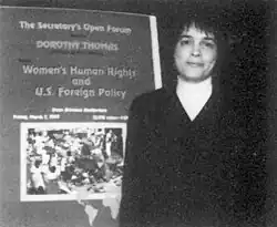 Dorothy Quincy Thomas (born 1960) is an American human rights activist.[1] She was a 1998 MacArthur Fellow, and a 1995 Fellow of the Radcliffe Institute for Advanced Study.
