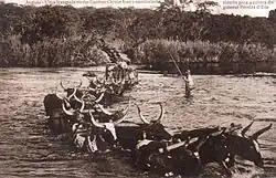 During the next seven to ten days water spots such as Tlhabala, Inkowane and Lethlakane were the setting for shocking scenes: From the third day on these banks the terrified bellows of the cows and screams of other animals were indescribable. In their distress, some of the oxen stormed ahead and trampled a few watering holes to mush. Thereafter they completely lost control and ran off. Most were never found again or eventually died of thirst. The suffering of the trekkers was no less heart-breaking. At times water had to be rationed between them in spoons. Some were so desperate to take in any form of fluid to assuage their thirst that they slit the throats of sheep, goats or even dogs and drank their blood or intestinal fluids. Amazingly enough, none of the trekkers died of thirst, however malaria still caused deaths. In these dismal circumstances the leader of the trek, Commandant Louw du Plessis, took the blame for the disastrous trek and resigned.[8]