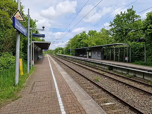 Dortmund-Germania station is a railway station in the Dortmund district of Marten in the German state of North Rhine-Westphalia. It was named Lütgendortmund (now used for a different station) and renamed Dortmund-Germania after the nearby Zeche Germania, a former colliery, on 29 May 1988. It is classified by Deutsche Bahn as a category 6 station[1] and was opened on 30 August 1987[4] on a new line completed between Dortmund-Dorstfeld and Germania on 3 June 1984 and electrified between Dortmund-Marten Süd and Germania on 28 August 1987.[5]