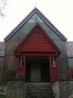 Around the year 1400, a new wooden stave church was built at Bergseng, about 500 metres (1,600 ft) south of the old church. The church was described as "fragile" in 1673 and apparently needed several repairs. It was repaired 1694 and again in 1710. In 1686, the church received a new altarpiece made by Johannes Skraastad.[5] By the 1730s, the church was in poor condition, and the ground conditions at the church site were considered unsuitable for rebuilding, so the decision was made to move the church site and build a brand new building.[4][6]