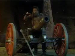 During the filming of a scene where Walker Edmiston fired the cannon, the charge was so strong an actor playing a Sleestak was knocked over.[1]