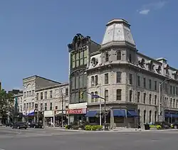 Downtown Guelph is the central business district of Guelph, Ontario, Canada. It is bordered by Wellington St. E. to the south, Woolwich St. to the East, Dublin St. to the west and Norwich St. to the North. Downtown Guelph is known for its distinctive limestone architecture and heritage buildings. Many of Guelph's historically designated properties are in or near the downtown area.[1]