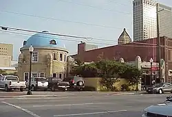 The Blue Dome District, named for a distinctive, domed building at Second Street and Elgin Avenue, in the area in the eastern section of downtown. The building was originally constructed in 1924 as a Gulf Oil service station. It has been converted to an information desk/office for the district, and is about two blocks south of the OneOK field.