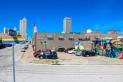 East Village comprises 115 acres bordered by East 2nd and East 7th Streets, Detroit Avenue and Lansing Avenue, just inside the inner-dispersal loop.[11] This area boasts an upscale martini bar, a hair salon, a pet day care, photography studios, lofts, a knitting room and living arts district, among others. The cornerstone of this neighborhood is the fifth largest LGBT community center in the United States, the Dennis R. Neill Equality Center, owned and operated by Oklahomans for Equality/OkEq (formerly Tulsa Oklahomans for Human Rights/TOHR), with further development being planned for more restaurants, residential lofts and retail.[12] Oklahomans for Equality has hosted Tulsa Pride on the first weekend of June each year since 1982.