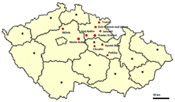 All these towns had been bequeathed by Bohemian kings to their wives since the beginning of the 14th century. Most of them are located in eastern Bohemia.