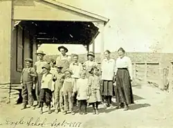 The school, which still stands, is believed to be the oldest school and the oldest one-room school in Colorado.[4] It was built of adobe, wood siding, and wooden shingles.[3] Doyle brought O.G. Goldrick to teach his children. He was the state's first school teacher. A sign by the schoolhouse provides information about its history.[4]