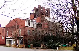 The Dr. Fred Stone Sr. Hospital is a six-story brick structure in Oliver Springs, Tennessee. Noted for its castle-like appearance and eccentric, unplanned design, the building was home to a one-doctor hospital operated by retired U.S. Army physician Fred Stone Sr. (1887–1976) in the 1940s, 1950s, and 1960s. Stone delivered over 5,000 babies while working at the hospital, and expanded the building room-by-room, floor-by-floor in his spare time.[3] In 2006, the building was added to the National Register of Historic Places for its association with the region's medical services history, namely the transition from rural country doctors to modern hospitals.[2]