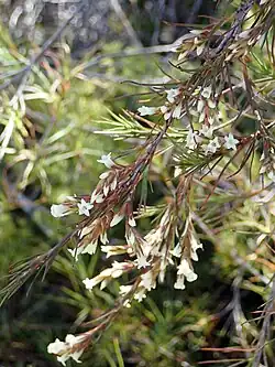 | Cladogram showing the phylogeny of selected species within the genus Dracophyllum, from research published in 2010.