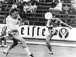 Džajić was just 18 when he was first named to the Yugoslavia national team. He made his debut on 17 June 1964 in a 2–1 defeat against Romania at the JNA Stadium in Belgrade.[7] Džajić would go on to earn 85 caps (the most in the history of the Yugoslavia national team) and score 23 goals.[8] He became renowned for his passing, dribbling and goal-scoring. He played in the 1968 European Championship semi-final against England, in which his 87th-minute lob over the goalkeeper Gordon Banks gave Yugoslavia a 1–0 victory against the then world champions. The British press dubbed him "the magic Dragan". He went on to score in the final against Italy but could not prevent Yugoslavia losing 2–0 after a replay.