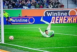After a trial period he passed with the club, Rosić signed a three-year scholarship contract with Mladost Lučani in summer 2016.[5] Next the whole first half-season he spent as a back-up for Nemanja Krznarić, Rosić was loaned on dual registration to Kolubara. After he played 5 matches for the club, Rosić returned to Mladost due to Krznarić's injury.[6] He made his debut for Mladost Lučani in 29 fixture of the 2016–17 Serbian SuperLiga season, played on 9 April 2017, when he was nominated for a man of the match against Čukarički.[7] In summer 2017, Rosić signed his first four-year professional contract with Mladost.[8] At the beginning of new season, Rosić stayed on the bench as an unused substitution in second leg of the second qualifying round for the 2017–18 UEFA Europa League, against Inter Baku. Following the game, Mladost had been eliminated from the further competition after 5–0 aggregate for Inter.[9] Later, during the 2017–18 Serbian SuperLiga campaign, Rosić was named for the first choice goalkeeper, collecting 33 matches in both domestic competitions.[10] Beside the 10th place on the final SuperLiga table, Rosić was awarded for a runner-up in the Serbian Cup.[11]