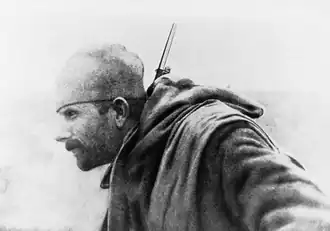 Matić, not knowing, became famous because of the photograph during the battle of Drina that was taken by Russian photographer and painter Sampson Tchernoff.[3][4] The photography depicted Matić with mustache and with full military gear during his mission. Soon after the photography was presented at the photo exhibition in New York City in 1916, and was later printed as a postcard when it became world-famous, symbolizing the Serbian struggle in the First World War.[5] The soldier's name was not known and sometimes instead of a name there was an inscription under the photo "Oko sokolovo" or "Serbian soldier – scout on the Drina".[1] The photo exhibition of Samson Černov, which included original photo of Matić was held during the October 2012 in PTT Museum in Belgrade.[6]