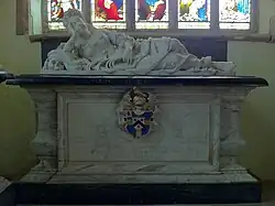 Henry Mordaunt (1568–1610) is known to have concealed priests at Drayton, with the house retaining one priest hole,[37] and was heavily suspected of involvement in the Gunpowder Plot of November 1605.[6] Robert Keyes – sometimes quoted as the keeper of his Turvey house,[31] and other times as the husband of the governess of Henry's children[38] – was a key conspirator and hid at Drayton after the plot's demise.[39] For his involvement, Henry Mordaunt was fined £666 13s 4d[6] and imprisoned in the Tower, with some sources even reporting that he died there in 1608.[31][37] Either way, he died before his successor and son, John (1599–1643), was of maturity.