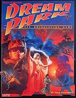 Dream Park: The Roleplaying Game is a role-playing game published by R. Talsorian Games in 1992. It was designed by Mike Pondsmith and was based on the 1981 novel Dream Park, which is itself about a live-action role-playing game amusement park. The player characters take on the roles of the players in this holographic game, simultaneously playing both the character and the character's alternate persona.