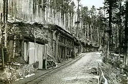 During the First World War, the military construction division R 22 laid a 11.3 km (7.0 mi) long military light railway with a track gauge of 600 mm (1 ft 11+5⁄8 in) to Uhlhorst station, around the front line at Lingekopf, Kleinkopf, Barrenkopf and Hartmannsweilerkopf west of Drei-Ähren. Its objective was to transport building materials for the bunkers, barbed wire, weapons, ammunition and supplied to the front line and on the way back bring wounded soldiers to the hospitals.[7] Thousands of French and German soldiers were killed in the battles along this railway line.[8]