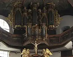 From 1704 the construction of wooden galleries began. However, the construction work inside the church continued until 1717 due to lack of money. The organ was commissioned from the Mainz organ builder Johann Anton Ignaz Will in 1715 and was installed at the beginning of 1717.[2]