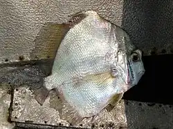 The African sicklefish (Drepane africana) is a species of ray-finned fish belonging to the family Drepaneidae, the sicklefishes. This fish is found in the costal waters of the eastern Atlantic Ocean from the Canary Islands and Mauritania south to Angola, including the Cape Verde Islands and the islands of the Gulf of Guinea.[1] It is a coastal species found over sandy and muddy bottoms between depths of 10 and 75 m (33 and 246 ft), moving into coastal lagoons at sexual maturity.[2]