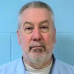 On February 9, 2015, Peterson was charged with two additional felonies—solicitation of murder and solicitation of murder for hire—for attempting to have James Glasgow, the state's attorney handling his prosecution, killed.[3] Peterson was convicted on May 31, 2016, and sentenced to an additional forty years on July 29, 2016.[4] On February 21, 2017, he was transferred from Illinois Department of Corrections custody to the United States Penitentiary in Terre Haute, Indiana. In December 2019, Peterson was transferred to an undisclosed out-of-state facility.[5][6]