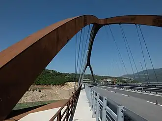 The bridge enhances the economic corridor between Albania and Kosovo, supporting regional integration and trade.[6] Its weathering steel arch has also become a landmark feature visible from much of the surrounding area.