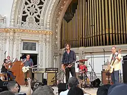 On August 31, 2014, Drive Like Jehu reunited for a performance at the Spreckels Organ Pavilion in San Diego's Balboa Park, accompanied by San Diego Civic Organist Dr. Carol Williams.[16][17] The collaboration was facilitated by Dang Nguyen, who co-owns Bar Pink in San Diego's North Park neighborhood with Reis and sits on the Spreckels Organ Society board of directors.[16] "In February or March [2014], we discussed possibilities and the topic of Jehu came up; that's where it started," said Nguyen. "It was a project they wanted to bring back together. Because, after Hot Snakes and Rocket [from the Crypt] reunited in the last couple of years, I think John and Rick felt that to do something at the organ pavilion was worth getting back together for."[16] Reis expressed enthusiasm for the organ's sound, saying "I especially love the way the low-end sound on the organ is so massive. When I go see organ concerts in the park, I want to collaborate with that sound and with Carol. It's not necessarily a 'good idea,' but it's an idea I feel strongly about, and it's such a San Diego thing."[16] According to Williams, "the point of the concert is to open up the (musical) boundaries, not to be narrow. The organ needs a future and any opportunities like this, I really look forward to."[16]