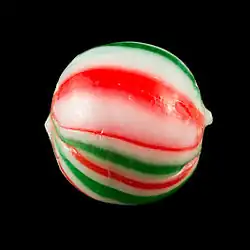 Drops are a traditional small, round confectionery made from a mixture of boiled sugar and flavourings. They are "dropped" onto a pan or baking sheet to set.[1] In the 1840s, drop roller machines came on the market.[2][3] These machines took the hot, 120 °C, cooked sugar, and molded it into shapes between two hand cranked brass rollers.[4]