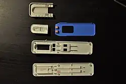 The DrugWipe is a moist wipe used to detect drug residue on surfaces, or on the forehead, palm, or tongue of an individual. An integrated ampule is broken, which is the medium for transporting the collected analyte to the antigen-binding site. The DrugWipe can be configured to detect cannabis, cocaine, opiates, amphetamines, MDMA, and benzodiazepines. Immunoassay strips containing antibodies bind to components of the different drugs.[2]