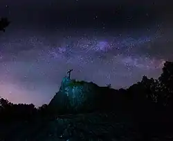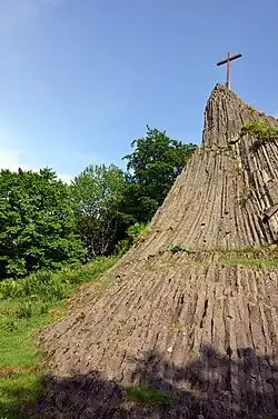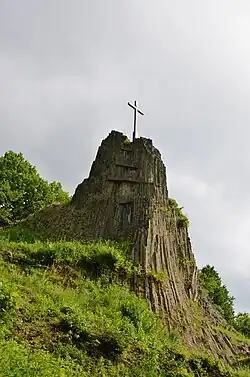 The Druidenstein is a cone-shaped basalt rock in the northern Heller Upland above the town of Kirchen on the Sieg in the parish of Herkersdorf, Altenkirchen, Germany. The basalt cone stands at a height 431 m above sea level (NN) and is about 20 metres high.
