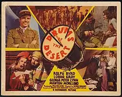Drums of the Desert is a 1940 American romantic adventure film directed by George Waggner and written by Dorothy Davenport and George Waggner. The film stars Ralph Byrd, Lorna Gray, Mantan Moreland, George Lynn, Willy Castello and Jean Del Val. The film was released on October 7, 1940, by Monogram Pictures.[1][2][3]