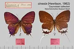 - ^ Savela, Markku (December 18, 2018). "Drupadia cinesia (Hewitson, 1863)". Lepidoptera and Some Other Life Forms. Retrieved February 4, 2020.