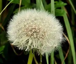 In botany, dry fruits are fruits which have a hard, dry pericarp around their seeds, these commonly disperse via wind with help of 'wings' and 'parachutes' or via animals with help of hooks which latch on animal fur or when seeds are consumed by the animals. They are different from fleshy fruits based on their dry pericarp,[1] in which the exocarp, mesocarp and endocarp aren't clearly distinguishable from each other.
