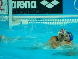 Dušan Mandić (Serbian Cyrillic: Душан Мандић; born 16 June 1994) is a Serbian water polo player who plays for Ferencváros.[1] He was a part of the Montenegrin junior water polo team before opting to play for Serbia. With Serbian junior national team he won a gold medal at the 2011 Junior Water Polo World Championship. At the 2012 Summer Olympics, he competed for the Serbia men's national water polo team in the men's event,winning bronze. He has won three gold medals for Serbia at the Olympics, the most recent one coming in Paris in 2024. He was also named MVP of the tournament in Paris as well.