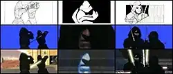 The script was first written by Thomas, with Macomber devising the fight. After about 14 months of pre-planning, filming took place at Alamo Studios in Santa Barbara, California, in September 2000.[2] Post-production was split between Thomas and Macomber. Thomas primarily handled the digital backgrounds and 3D animation, while Macomber handled compositing and the lightsaber effects. The final version took four months of post-production, using off-the-shelf software from Electric Image, Adobe, and Apple, and about in out-of-pocket costs.[1][3]