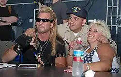 Dog and Beth Chapman signing autographs during a visit aboard the nuclear-powered aircraft carrier USS Nimitz on May 20, 2005, Pearl Harbor, Hawaii.