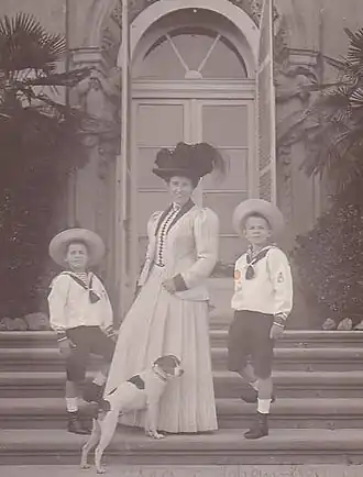 Olga of Württemberg with her sons: Prince Albrecht of Schaumburg-Lippe (right) and Prince Eugen of Schaumburg-Lippe (left).