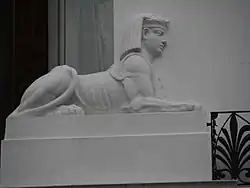 The Anglo-Dutch merchant banker, author, philosopher and art collector Thomas Hope had an Egyptian-influenced house built at no. 10 in 1799, and decorated it extravagantly.[1] The building has been Grade II listed since 1954.[2] The Egyptian Room in his house was the inspiration for the Egyptian Hall in Piccadilly, an exhibition hall built in the ancient Egyptian style in 1812, and demolished in 1905.