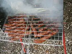 Meat is considered to be one of the most important ingredients of "masculine" food, since meat conveys the meaning of "sexuality and virility".[34] Thus, if masculinity is related to meat, a mostly vegetarian diet is inevitably interpreted as feminine. Not only the consumption of meat, but also the various ways in which it is cooked, are associated with a specific idea of masculinity. For instance, barbecued meat and its consumption have always been seen as a rather masculine activity.[34] There is a growing literature demonstrating how types of unhealthy food are interpreted to be masculine because of the presence of cultural stereotypes according to which women tend to eat a healthier diet than men.[35]