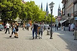 The city contains many historical buildings in the half-timber style, most notably along the Market Street, which stretches from the St. Cyriakuskirche[3] (Catholic, built 1250–1490), also called "Oberkirche" (upper church), down to the St. Servatiuskirche[4] (Protestant, built 1370–1520), also called "Unterkirche" (nether church).