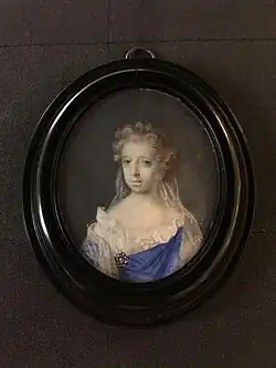 The younger of two daughters, at a young age she had a desire for learning and, unusually for the time, she was educated privately alongside her brothers by their tutors. A water colour portrait of her aged 15 from 1690 painted by Edmund Ashfield is held in the collection of the Victoria and Albert Museum.[4]