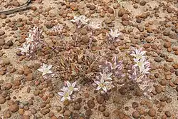 This plant is likely pollinated by members of the sand wasp group Bembicinae, and beetle species of Dasytes. Rabbits and small rodents are significant herbivores of the plant, especially consuming it in dry periods. The leaves of the plant are also consumed during the winter growing season. Plants may re-sprout from beneath the soil even if the above-ground parts appear to be dead.[1]