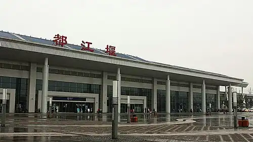 The Dujiangyan railway station (Chinese: 都江堰站; pinyin: Dūjiāngyàn Zhàn) is a railway station of Chengdu–Dujiangyan Intercity Railway. The station located in Guankou, Dujiangyan, Chengdu, Sichuan, China.[1]