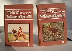 From 1910 to 1911, he led an expedition to Lake Chad and the northern rivers of the Congo to the Nile in current Sudan. Adolf Friedrich and his companions explored the then little-known primeval forest region of the Congo tributaries and the basin of Lake Chad. Individual groups extended their explorations to the Bahr el Ghazal near the upper Nile, while others travelled to south Cameroon and the islands of the Gulf of Guinea. Vom Kongo zum Niger und Nil ("From the Congo to the Niger and the Nile"), a two-volume work based on the 1910–1911 expeditions, has an excellent reputation today for its detail and images.