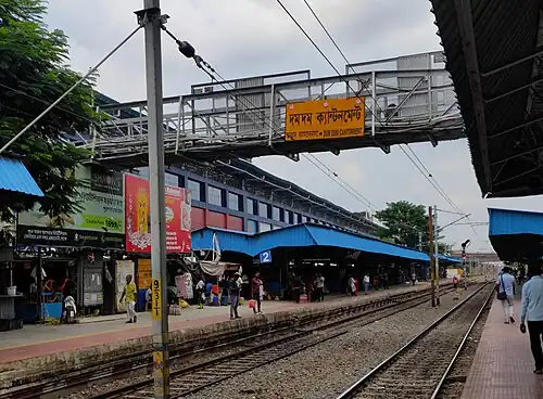 Dum Dum Cantonment (DDC) is a Kolkata Suburban Railway station in Dum Dum. The Dum Dum Cantonment metro station is adjacent to Dum Dum Cantonment railway station.[1] It was named by the Cantonment area near Dum Dum.[2] It serves Gora Bazar, Subhas Nagar, Rabindra Nagar, Kumarpara and surrounding Dum Dum Cant. areas.[3]