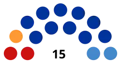 ![]() Communist Party (2) Liberal Democratic Party (2) A Just Russia (1) The election for the sixth convocation was held on 18 September 2016. Its first session opened on 30 September. The number of deputies had increased, from 12 to 15, and Maslov Ivanovich was elected chairman. |