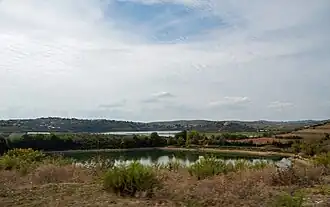 The Dumreja, a karst landscape rich in deposits of Diapir evaporite, is located between the Shkumbin River in the north, the Devoll River in the east, the Seman River in the south and the Myzeqe Plain in the west. The area is characterised by hills, poljes and sinkholes that rise up to 300 m, and even up to 450 m in the far north. Around 80 small karst lakes were formed in up to 15 m deep depressions.[3]