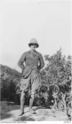 Glasfurd did not always get along with his superior, Lieutenant Colonel C White, who gathered all the staff functions to himself, leaving Glasfurd with little to do. When White became sick, Glasfurd took over as GSO1 of the 1st Division. White did not return, instead becoming Brigadier General General Staff (BGGS) of ANZAC, and so on 1 October 1915, the appointment became permanent and Glasfurd was promoted to temporary lieutenant colonel.[6] During the evacuation of Anzac Cove, Glasfurd represented the 1st Division on the Rear Party staff of A. Russell, which controlled operations at Anzac Cove until Russell handed over to Colonel J. Paton. For his services at Anzac Cove, Glasfurd was mentioned in dispatches and made a brevet lieutenant colonel in the British Army in January 1916.[7]