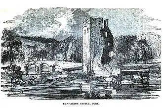 The castle changed hands several times before falling into ruin. Several grand houses were built in the castle demesne before architect, Sir Thomas Deane built "Dundanion House" in the 1830s.[4][5] Contemporary Deane family diaries mention stonemasons making "a ‘picturesque ruin'" of Dundanion Castle during the construction of Dundanion House.[8]