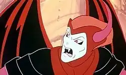 - Tiamat (voiced by Frank Welker) – a fearsome five-headed dragon with a reverberating multi-level voice. Her five heads are a white head that breathes ice, a green head that breathes toxic gas, a central red head that breathes fire, a blue head that breathes lightning, and a black head that breathes acid. Tiamat is known to be the sole creature that Venger fears.