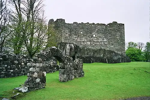 ![]() Dunstaffnage Castle seen from the east, with the gatehouse in the centre | |